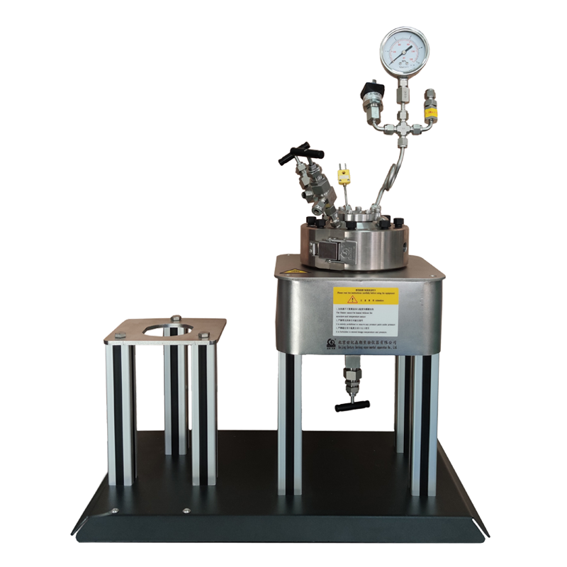 4、整套装置的反应釜主体材质采用耐高温和耐腐蚀性能良好的316L 不锈钢,釜盖配40mm可视直径蓝宝石视窗、釜内测温K型热电偶,压力表与压力变送器及压力爆破阀,针阀与备用堵头;釜底配针阀,设计温度250℃,设计压力5Mpa,温控精度±1℃,反应釜有效容积120ml;